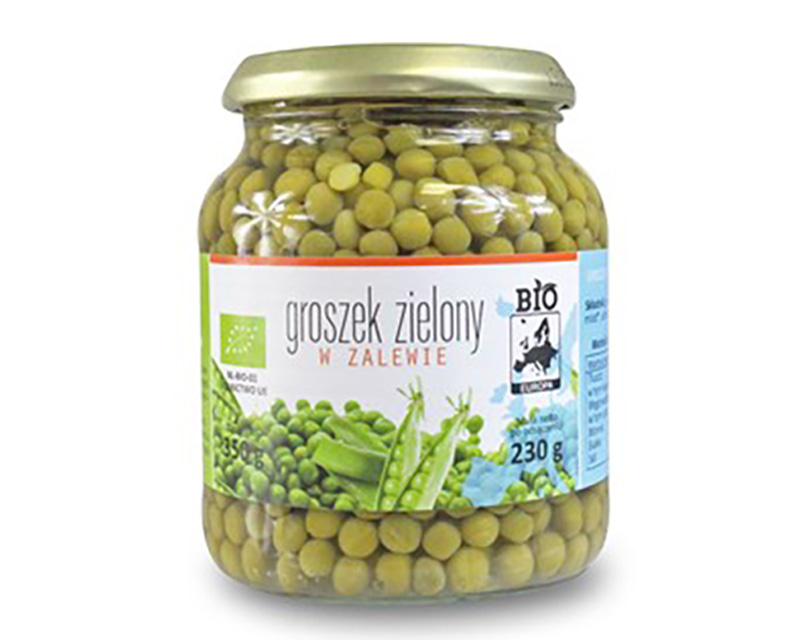 Органический консервированный зеленый горошек в банке, 350 г (230 г)