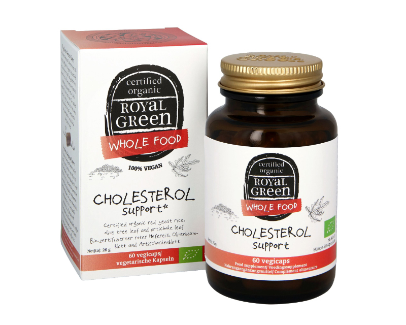 Добавка Royal Green BIO Cholesterol Supplement содержит 100% сертифицированные дрожжи красного красного дерева, экстракт артишока и листьев оливы. Дрожжи красного риса богаты природными соединениями, называемыми монахолинами, самым известным из которых является К-монахолин. Две капсулы содержат 2,5 мг К-монаколина. Артишок* и листья оливы* помогают поддерживать нормальный уровень холестерина в крови. Это уникальная формула, созданная из органических трав, без синтетических ингредиентов и наполнителей.