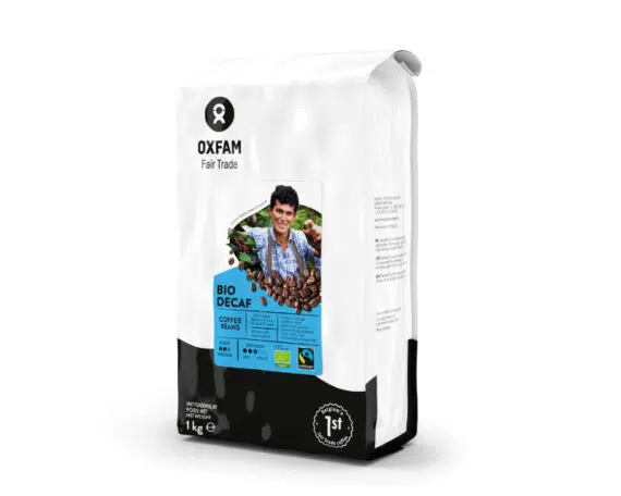Tasakaalustatud kohv heledalt röstitud ubadest, 100% looduslik: Oxfam Fair Trade ei kasuta ubadest kofeiini eemaldamiseks kemikaale. Selle asemel töödeldakse ube vedela süsihappegaasiga (CO₂). Ingliskeelset lisateavet loodusliku kofeiinivaba protsessi kohta leiab siit.