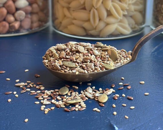 See röstitud seemnesegu on kohe kasutusvalmis. See koosneb kergelt röstitud tumedatest linaseemnetest, seesamiseemnetest, päevalilleseemnetest ja kõrvitsaseemnetest. Sobib suurepäraselt paljude töödeldud ja töötlemata roogade maitse parandamiseks, leiva, focaccia või küpsiste valmistamiseks, müsli maitsestamiseks või lihtsalt maitsvaks suupisteks.